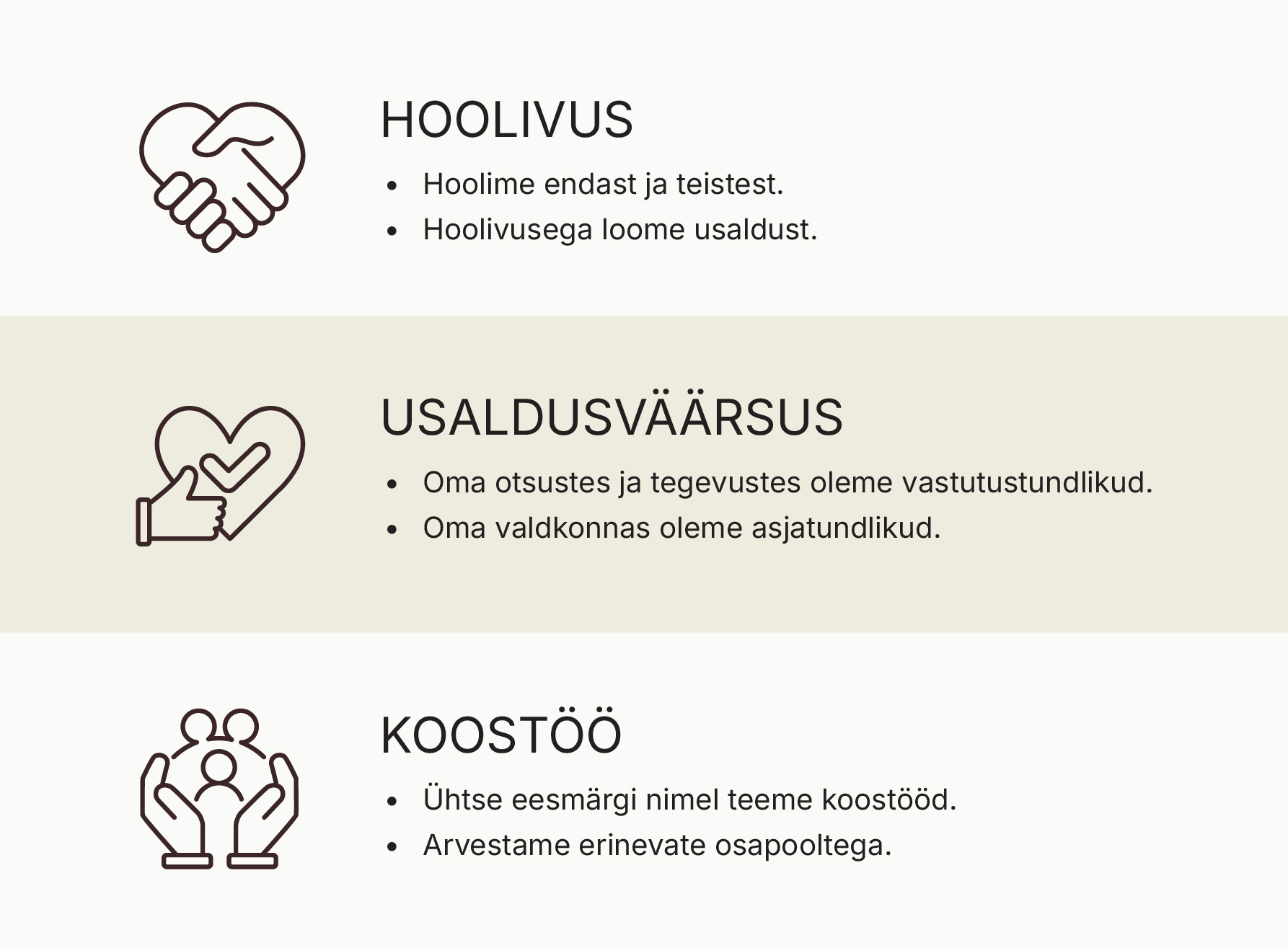 Igapäevases töös on meie missiooniks pakkuda teenusesaaja vajadustele vastavat teenust.
